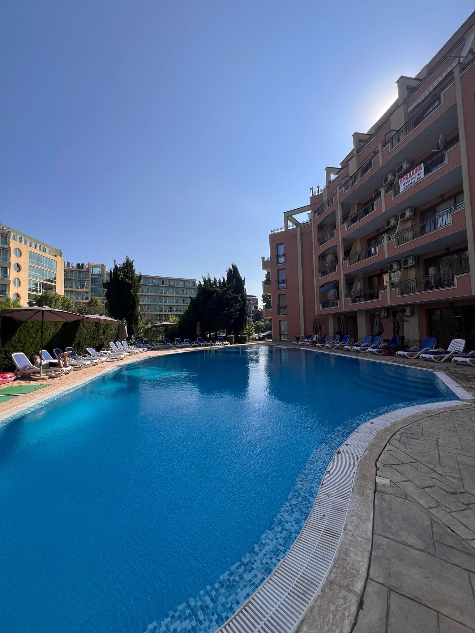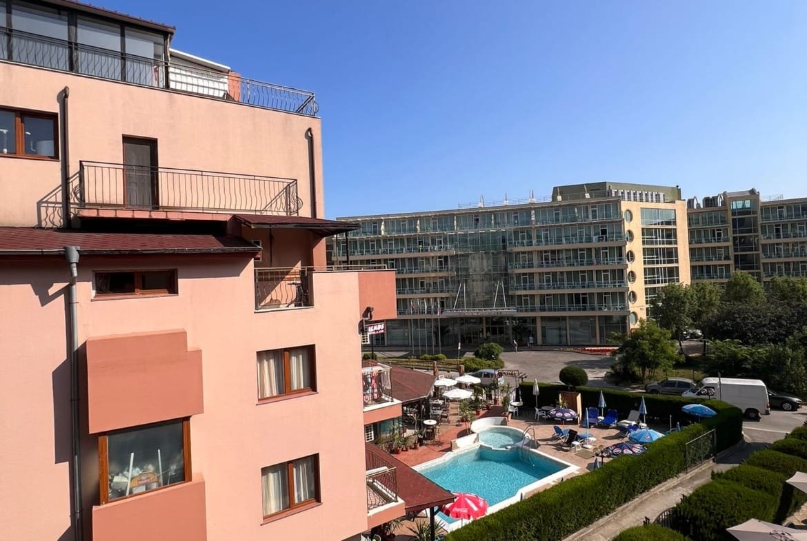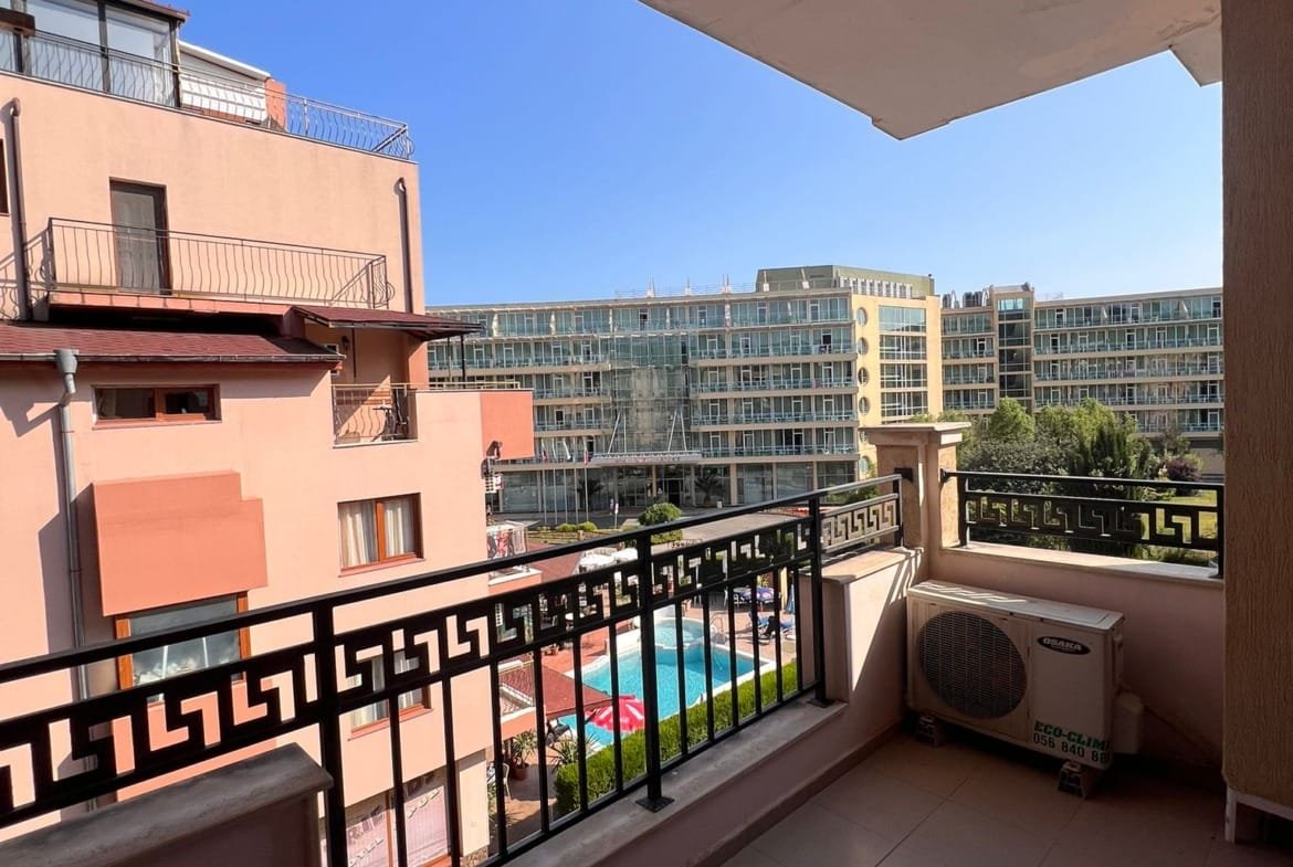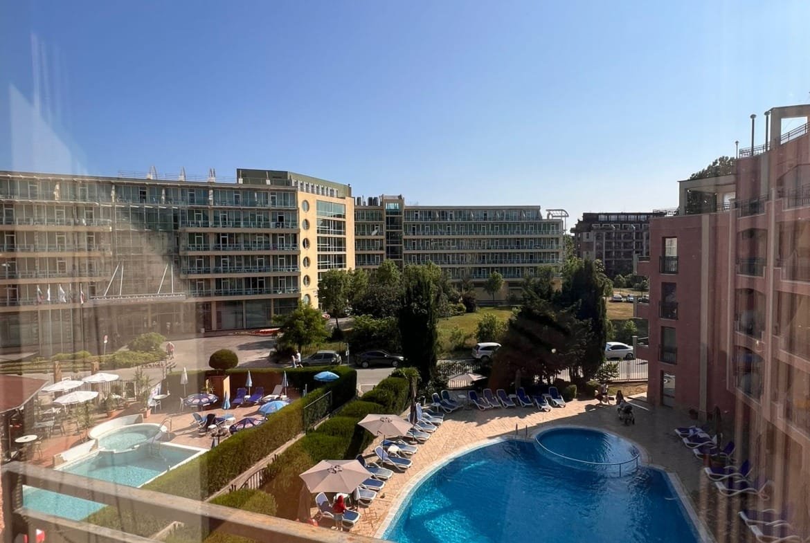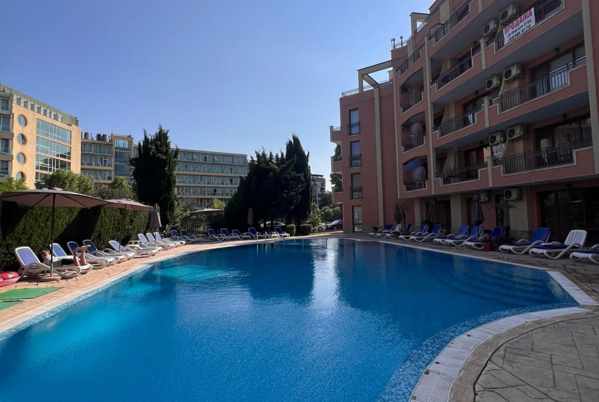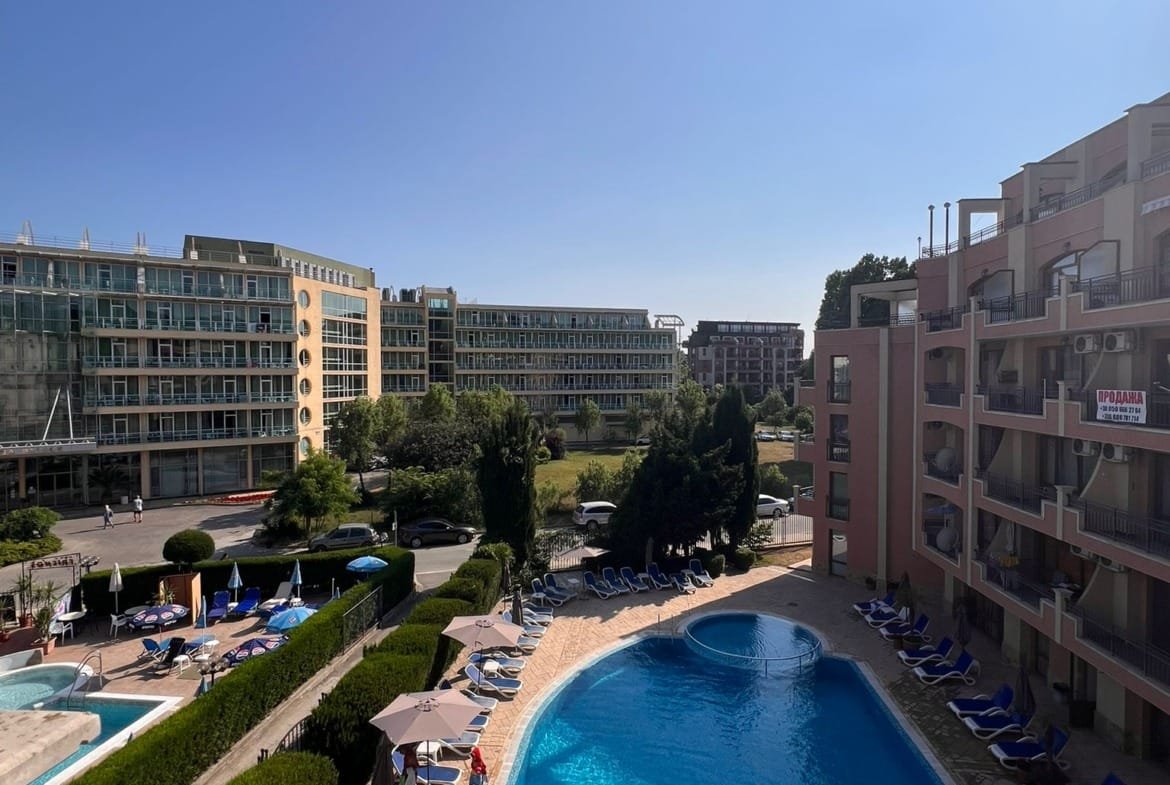 Просторная двухкомнатная квартира с видом на бассейн в комплексе Антарес, Солнечный Берег!
