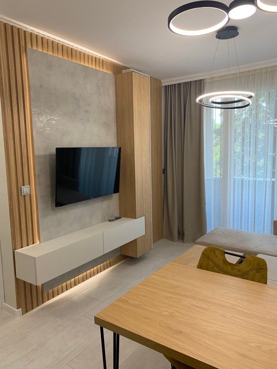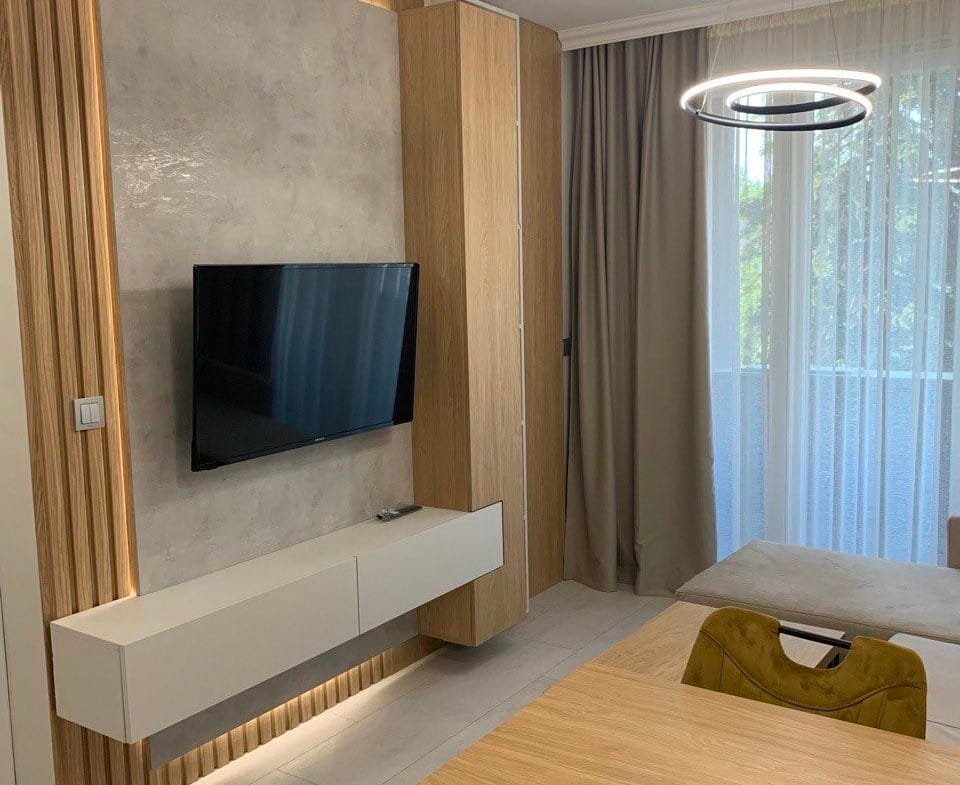 • Оптимальная планировка: На площади 57 м² пространство распределено максимально функционально: светлая гостиная с кухонной и обеденной зонами, уютная изолированная спальня, прихожая и современная ванная комната.