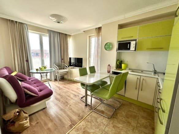 Светлая двухкомнатная квартира (54 м²) на 5-м этаже с видом на море и бассейн в комплексе Elitonia 1, Равда!