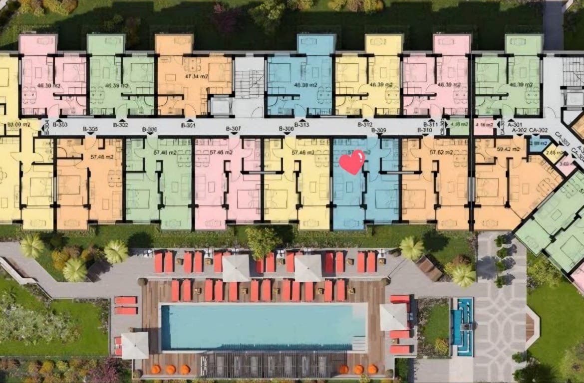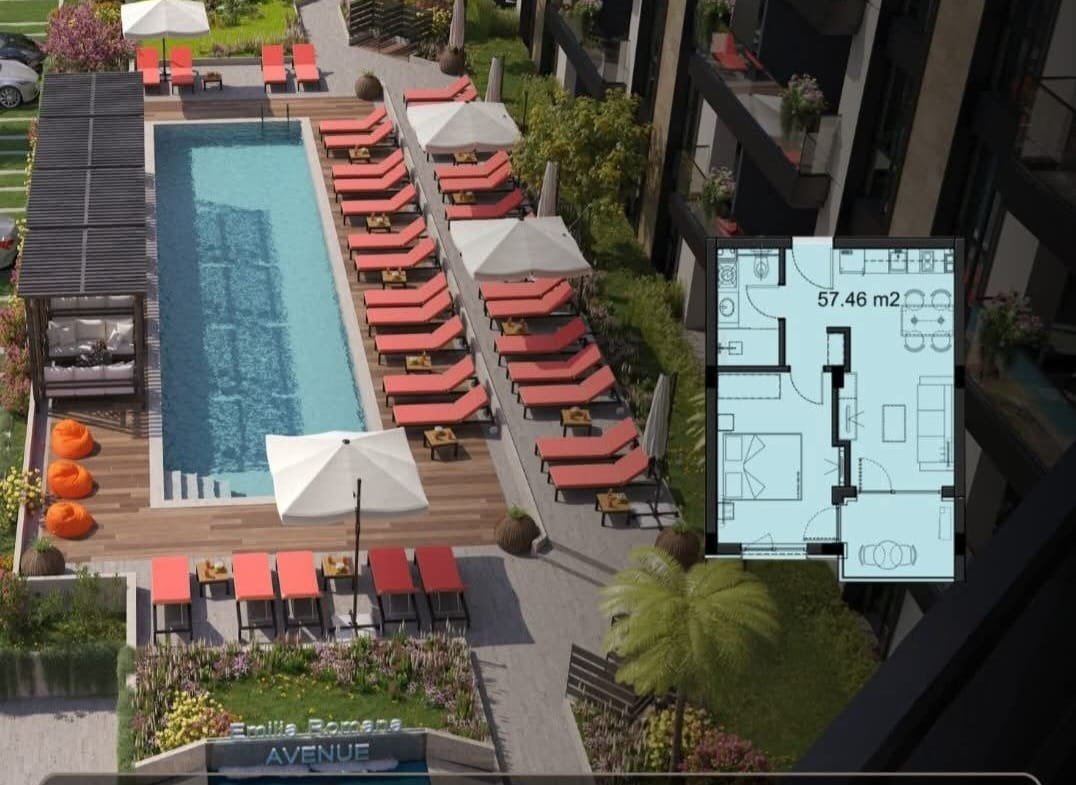 Просторная двухкомнатная квартира (57 м²) с видом на бассейн в комплексе Emilia Romana Avenue, Солнечный Берег!
