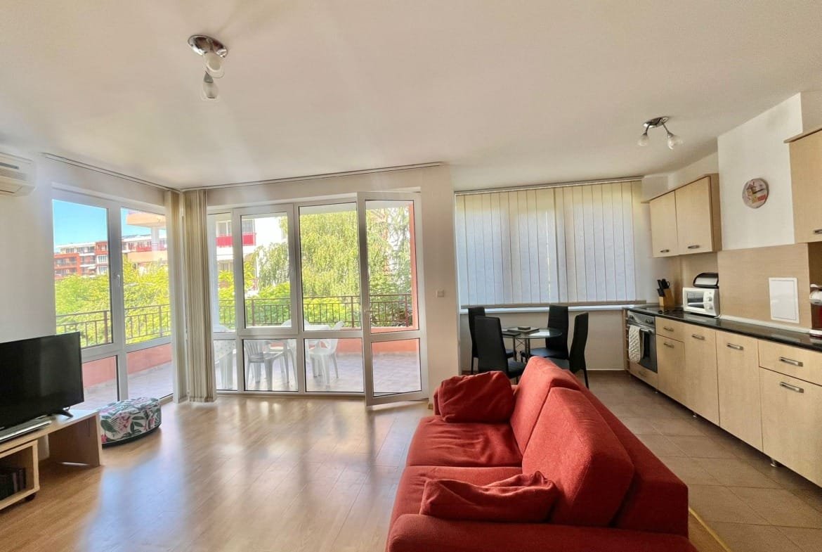 Просторная двухкомнатная квартира (86 м²) с видом на море и бассейн в комплексе Форт Нокс Ривиера, Равда!