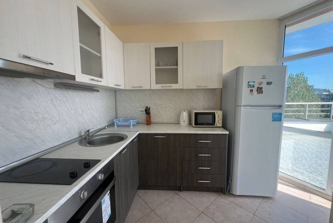 Предлагаем к продаже очень просторную двухкомнатную квартиру в комплексе Pirrop City (Пироп Сити), расположенном на популярном курорте Солнечный Берег. Апартамент имеет внушительную, почти нетипичную для двушки, площадь 162 м² и находится на 6-м этаже, с которого открывается вид на улицу.