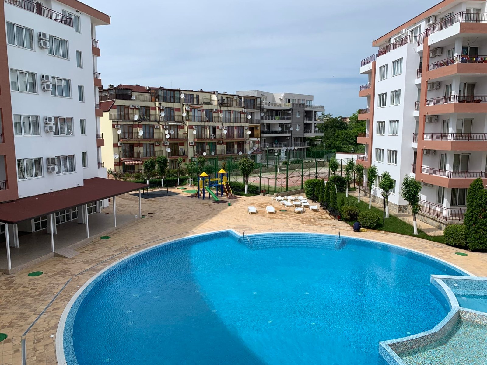 • Инфраструктура Riviera Fort: В распоряжении владельцев большой открытый бассейн с детской секцией, теннисный корт (который также используется как футбольное поле), детская площадка, уютный ресторан и ухоженные зеленые аллеи для прогулок.