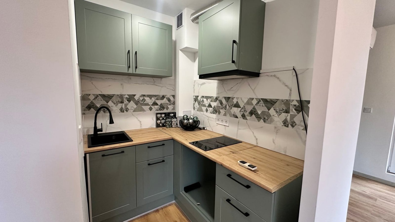 Функциональная планировка: Площадь 54 м² включает светлую гостиную с кухонной зоной и комфортную изолированную спальню. Из комнат предусмотрен прямой выход на ваш личный двор.