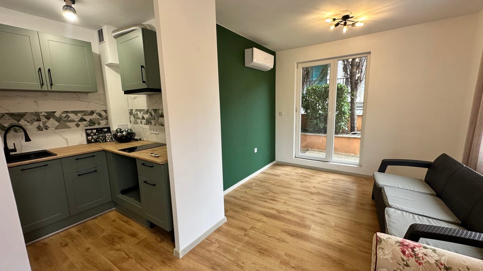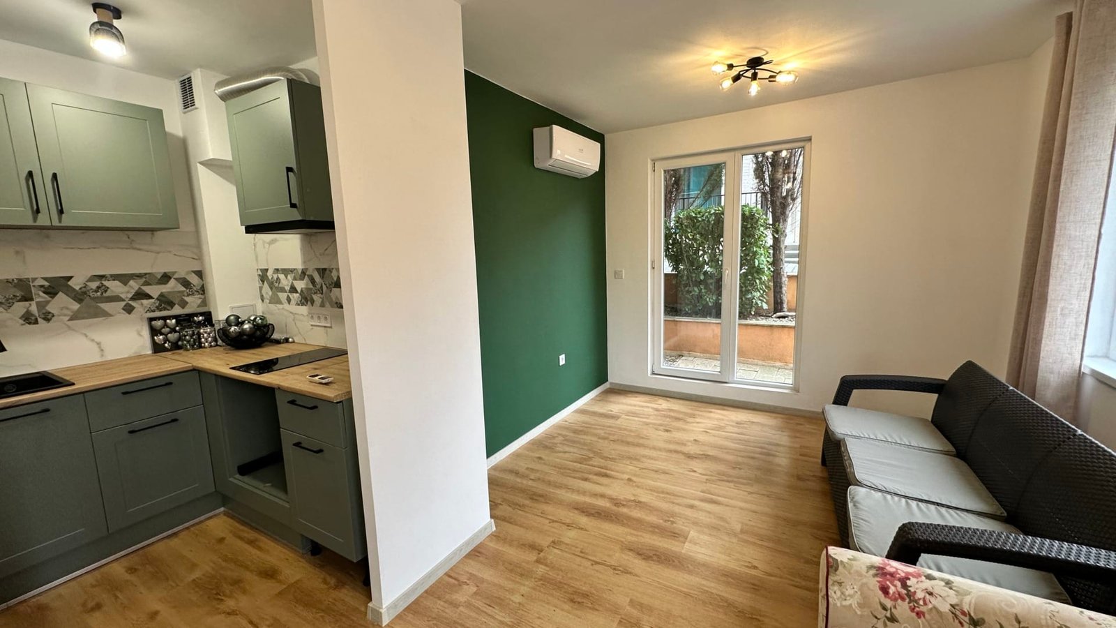 Эксклюзивная двухкомнатная квартира (54 м²) с собственной территорией (121 м²) на 1-м этаже в комплексе Riviera Garden, Равда!