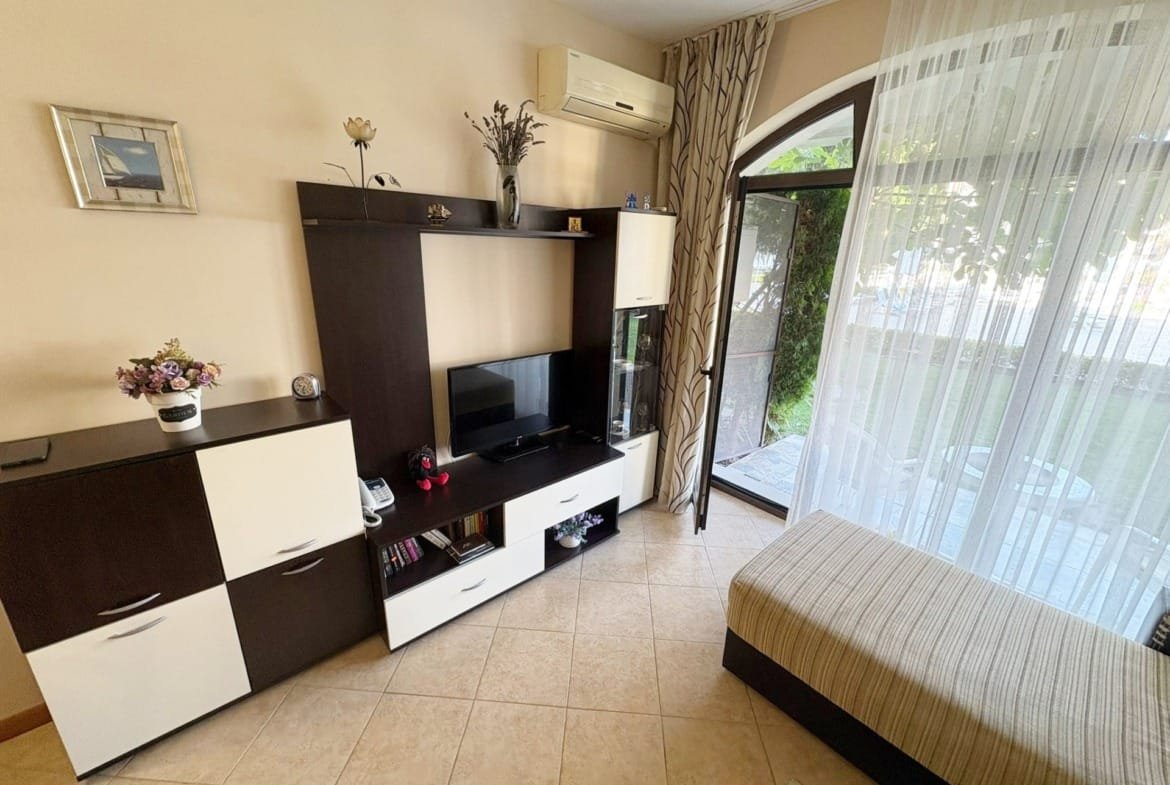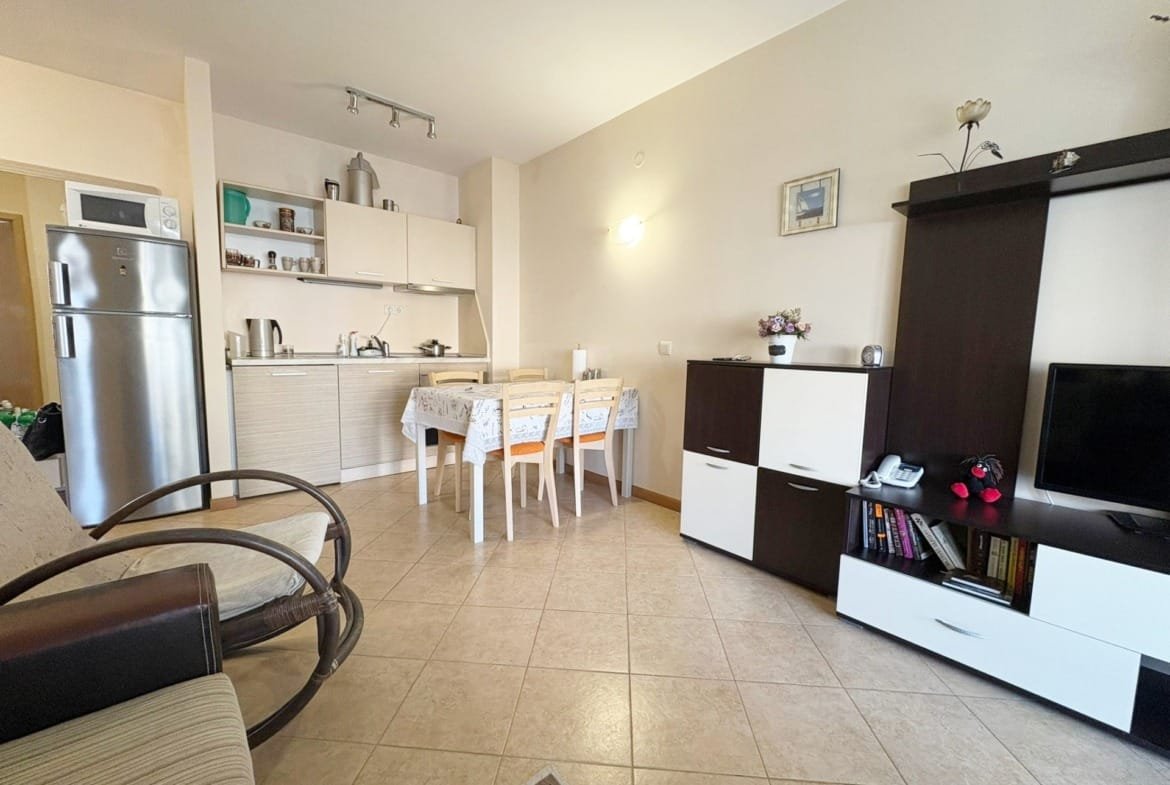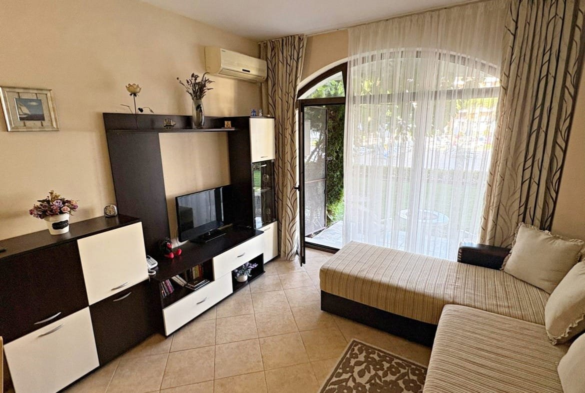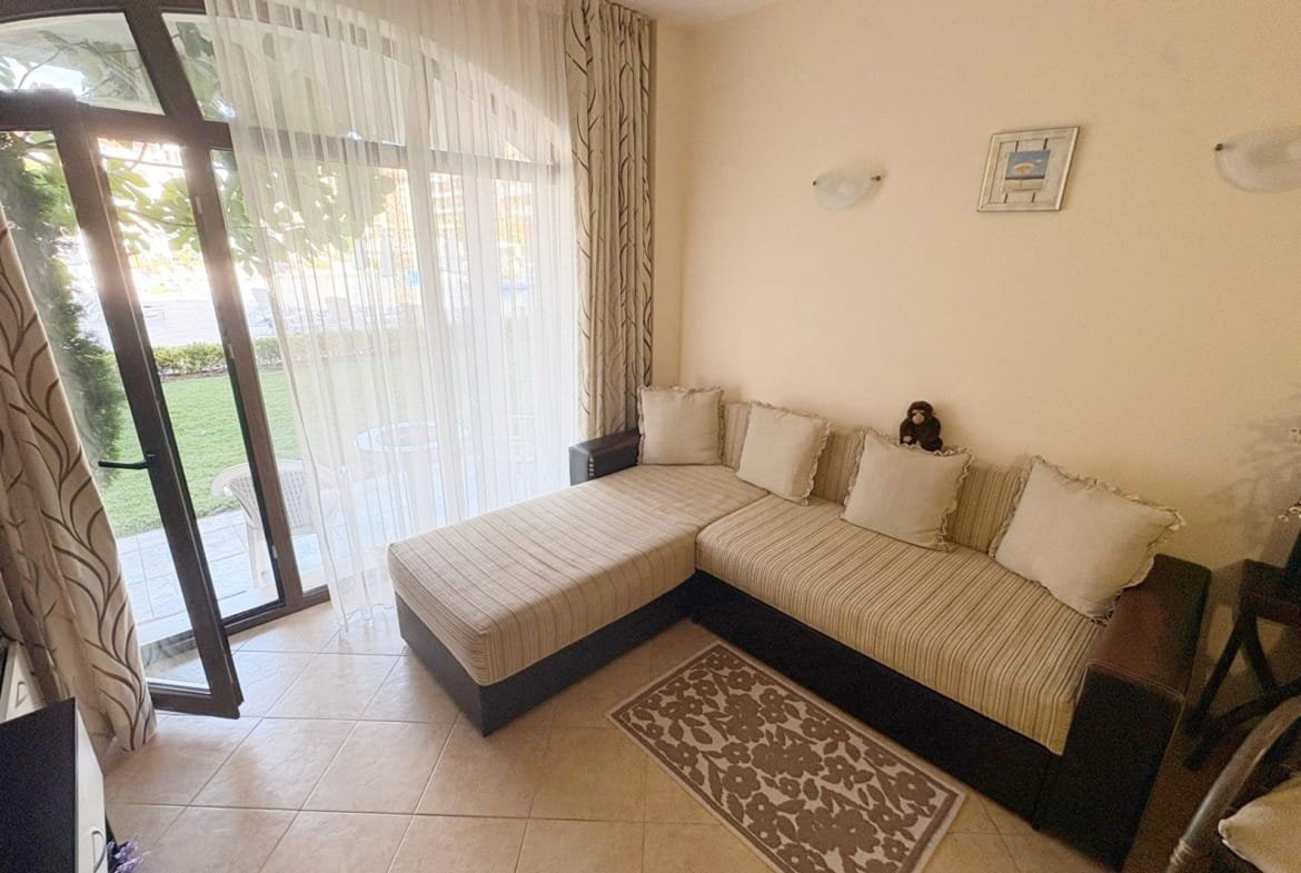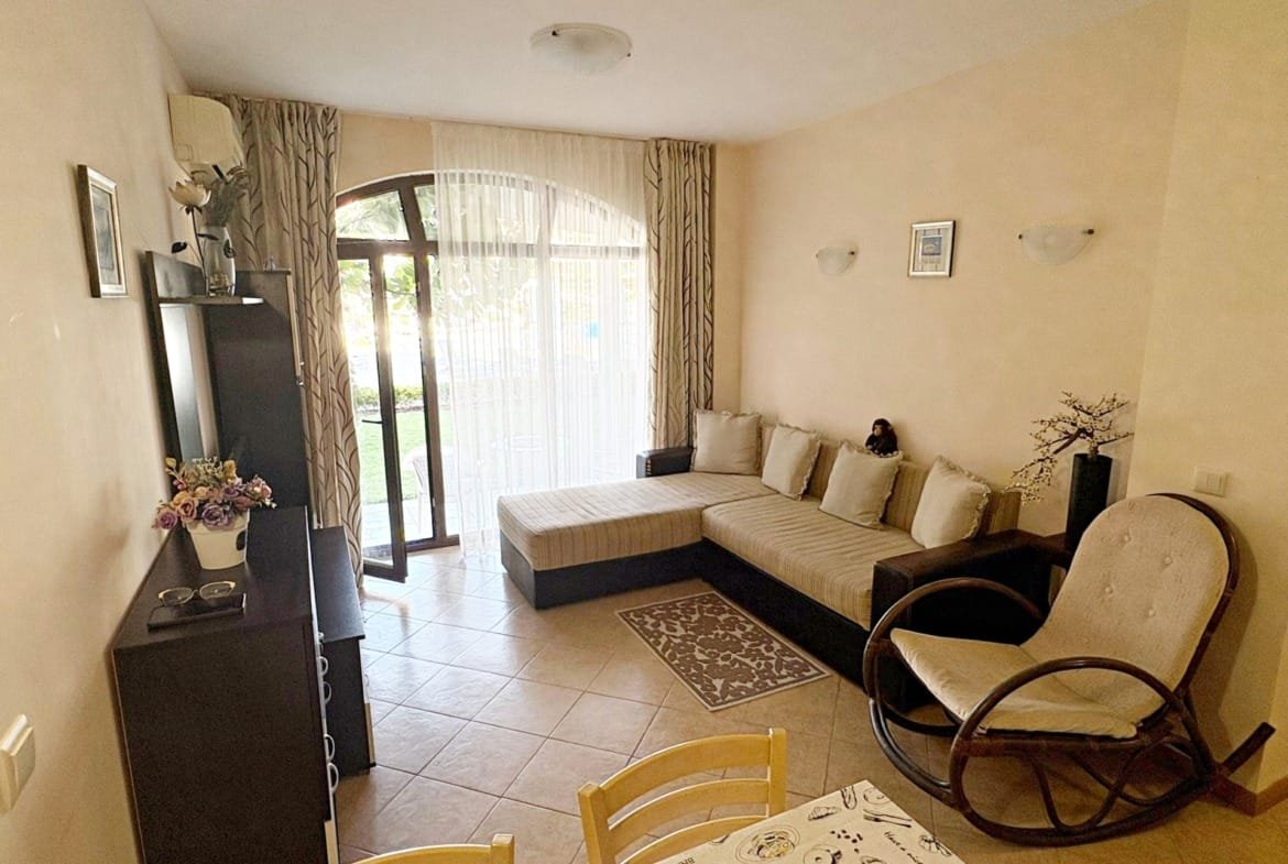 Предлагаем к продаже просторную двухкомнатную квартиру в комплексе Royal Sun, расположенном на популярном курорте Солнечный Берег. Апартамент площадью 49 м² находится на 1-м этаже и имеет приятный вид на бассейн. Это отличное предложение для тех, кто ищет комфортное жилье для летнего отдыха или перспективное вложение, которое можно выгодно сдавать в аренду. Комплекс Royal Sun предлагает всё необходимое для спокойного отдыха.