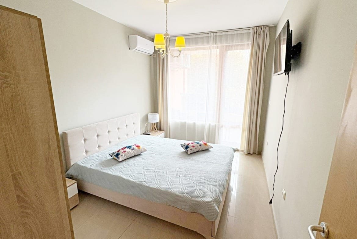 Уютная двухкомнатная квартира (62 м²) на 1-м этаже с видом на бассейн в комплексе Сан Флауэр, Солнечный Берег!