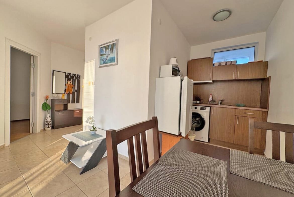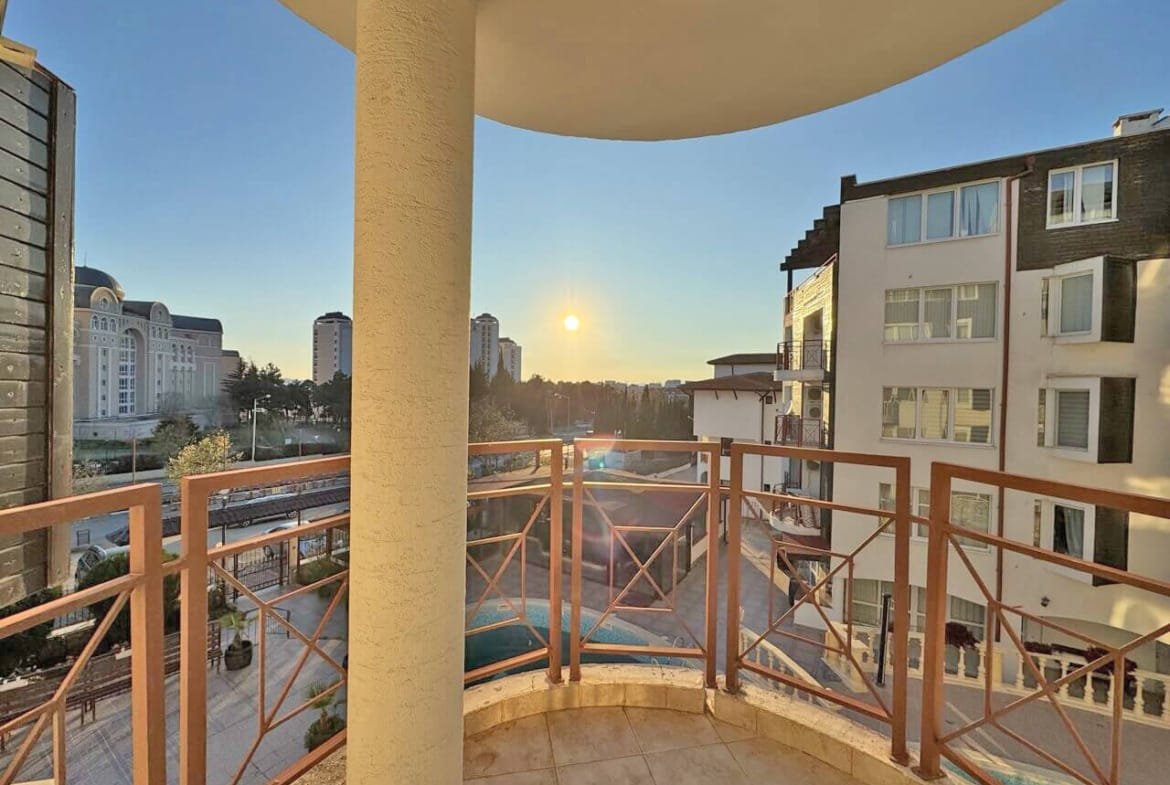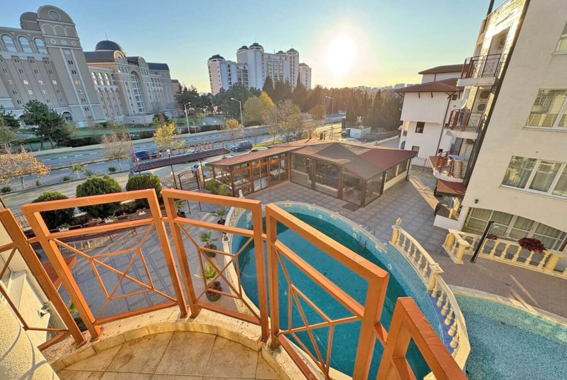 Предлагаем к продаже уютную двухкомнатную квартиру в комплексе Vista Del Mar 2 (Виста Дель Мар 2), расположенном в спокойной и живописной части курорта Святой Влас. Апартамент имеет площадь 55 м² и находится на удобном 3-м этаже, предлагая классический курортный вид на бассейн.