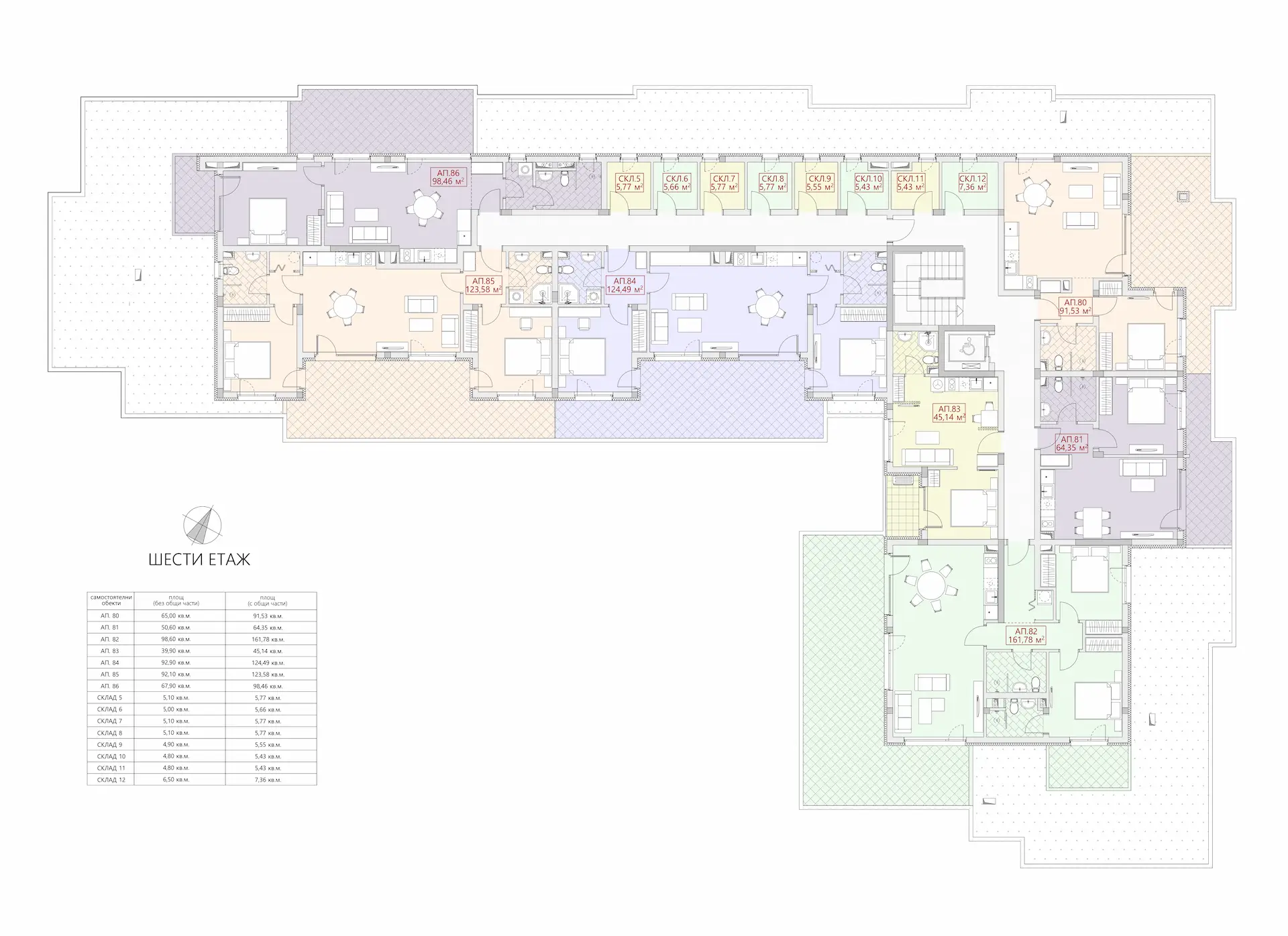 Доступна опция приобретения функциональных мебельных пакетов, а также паркоместа и складовые помещения на территории.
