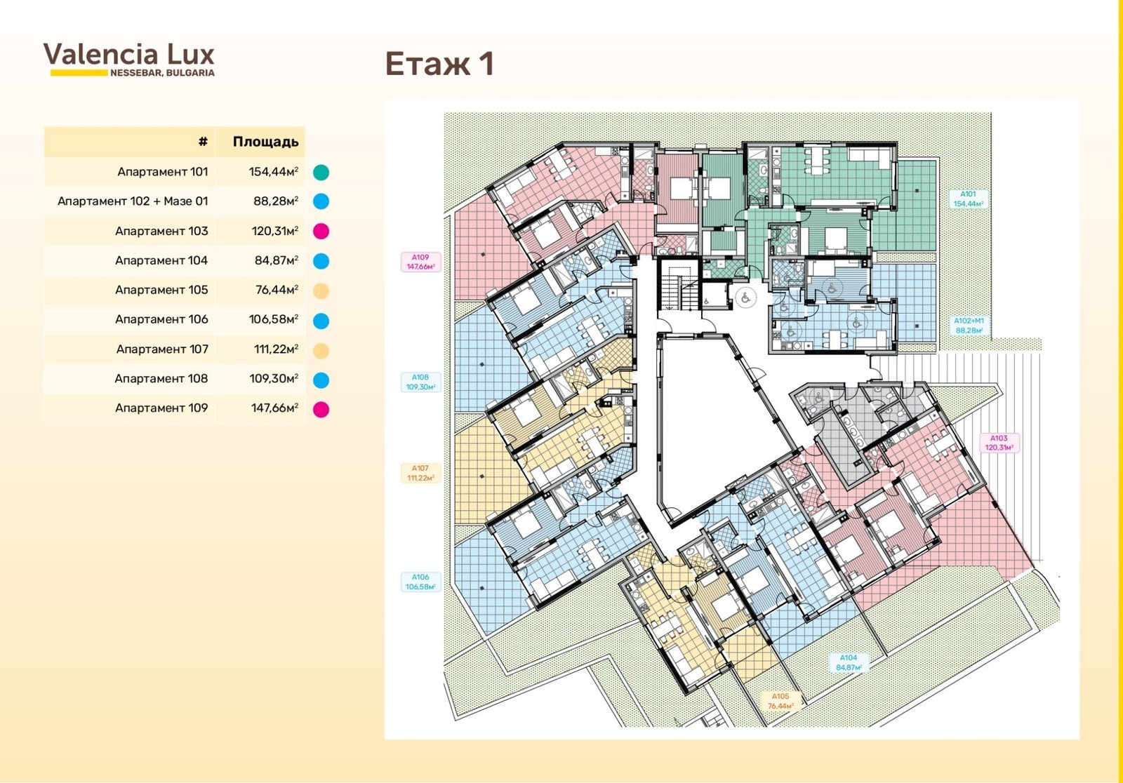 Расположенный в южной части живописного Несебъра, комплекс Valencia Lux состоит из двух и трехкомнатных апартаментов, которые будут переданы покупателю в завершенном виде.