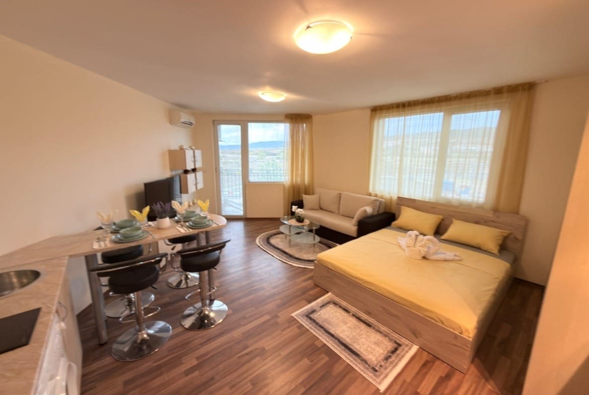 Просторная студия (44 м²) с видом на улицу в комплексе Амадеус 19, Солнечный Берег!