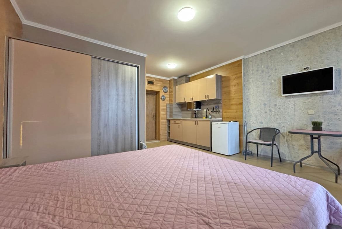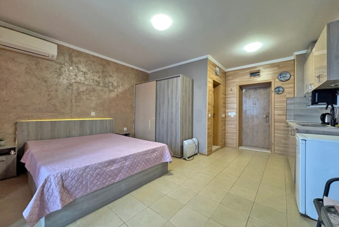 Предлагаем к продаже студию в комплексе Diamond Bay (Даймонд Бэй), расположенном в благоустроенной северной части курорта Солнечный Берег. Апартамент обладает отличной для данного типа жилья площадью 40 м², находится на 4-м этаже и ориентирован на городскую часть курорта.