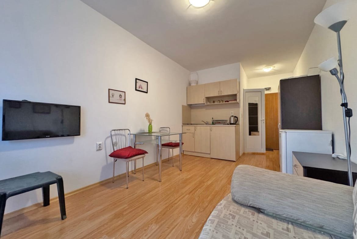 Предлагаем к продаже компактную и функциональную студию в комплексе Gerber Residence 2 (Гербер 2), расположенном в западной, более спокойной части курорта Солнечный Берег. Апартамент имеет площадь 31 м² и находится на 1-м этаже, с которого открывается вид на городскую инфраструктуру.