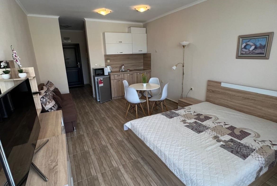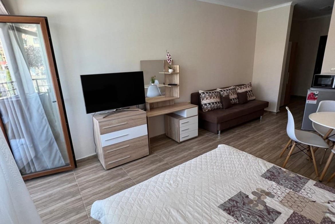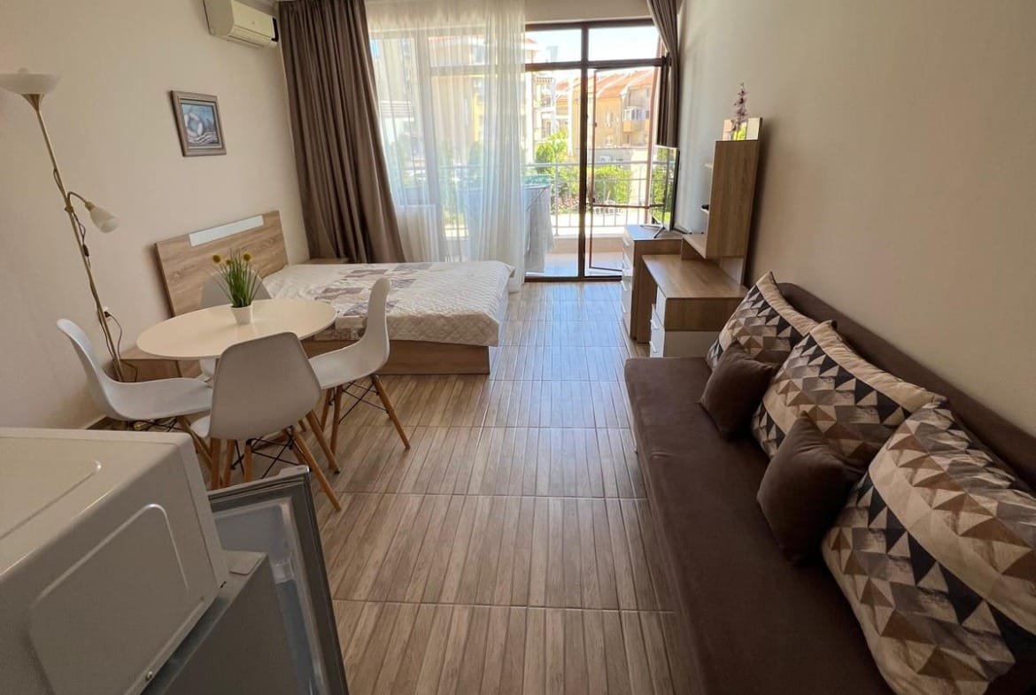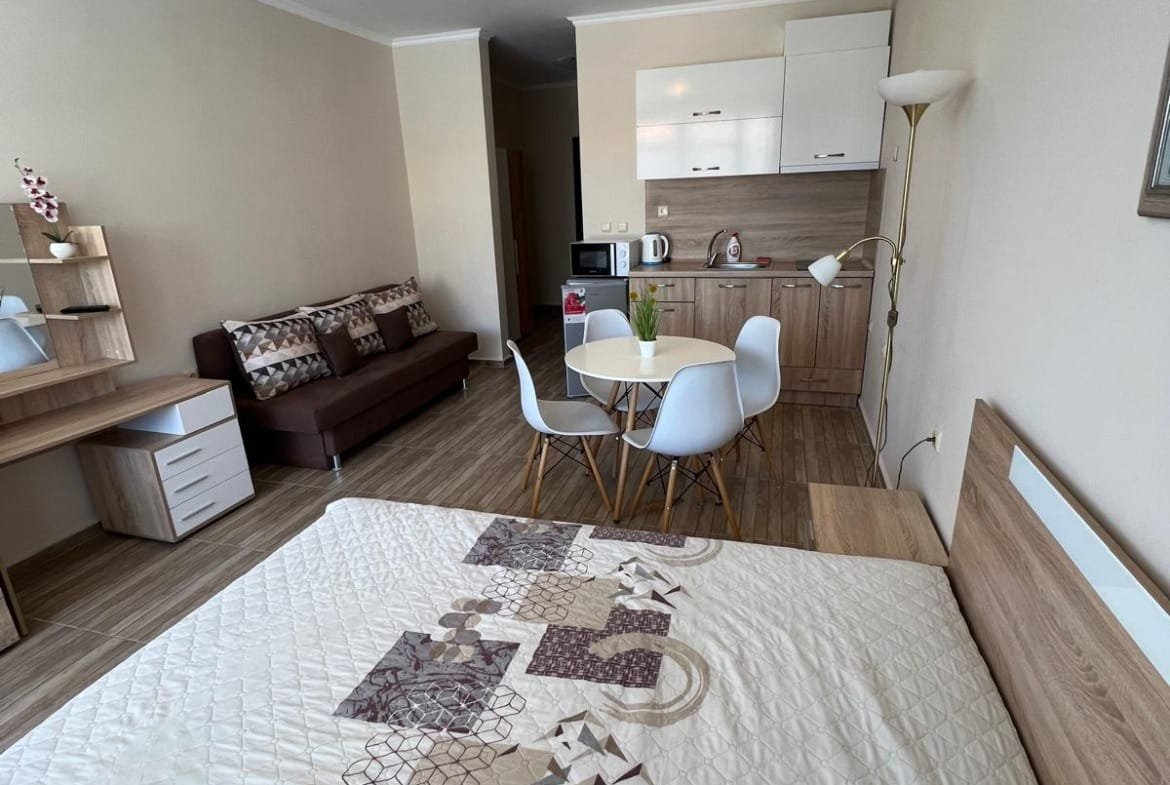 Предлагаем к продаже просторную студию в популярном комплексе Сън Уейв (Sun Wave), расположенном в живописном городе Святой Влас. Апартамент имеет внушительную площадь 46 м² (очень большая для студии!) и находится на 2-м этаже. Из окон открывается прекрасный комбинированный вид на море и бассейн. Это идеальное предложение для тех, кто ищет комфортное жилье для летнего отдыха или выгодный вариант для сдачи в аренду, гарантирующий стабильный доход.