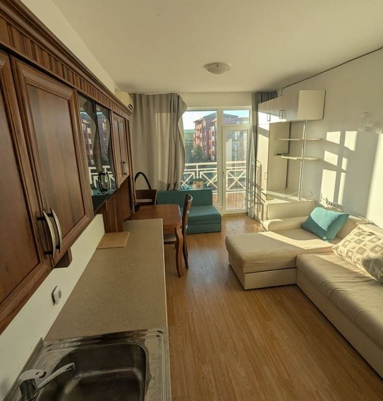 Предлагаем к продаже функциональную студию в одном из самых масштабных комплексов в районе Солнечного Берега — Sunny Day 6 (Санни Дей 6). Апартамент площадью 32 м² расположен на 3-м этаже и ориентирован на внутреннюю территорию с прямым видом на бассейн.