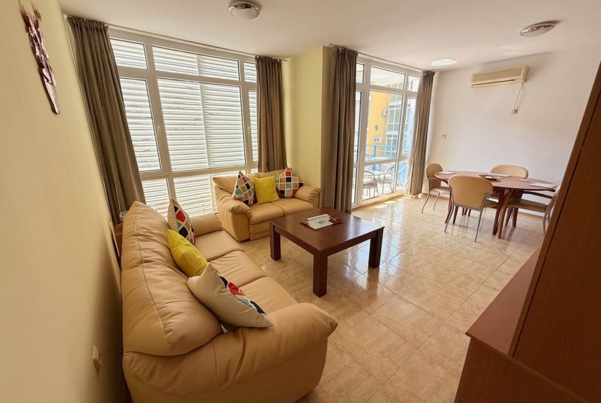 Предлагаем к продаже просторную трехкомнатную квартиру в комплексе Елит 1 (Elite 1), расположенном на популярном курорте Солнечный Берег. Апартамент площадью 85 м² находится на 2-м этаже и имеет спокойный вид на улицу.