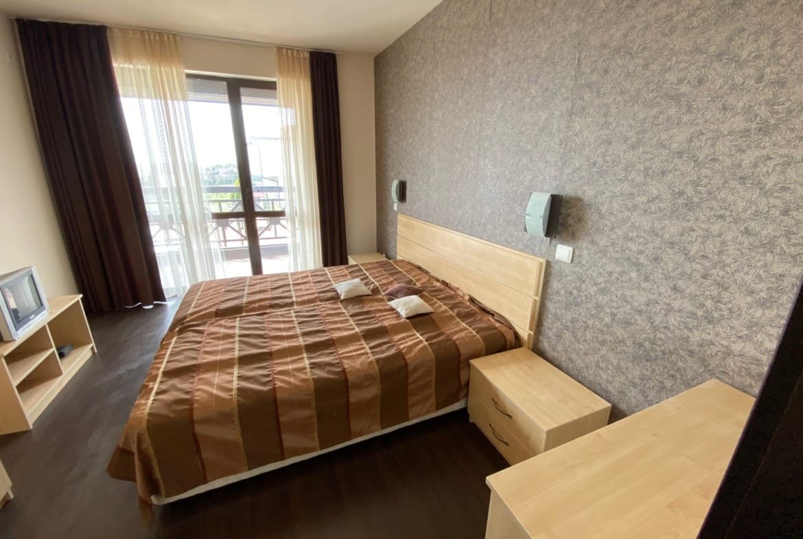 Потрясающий панорамный вид (Sea & Nessebar View): Благодаря расположению комплекса на холме, из окон и с просторных террас открывается великолепный вид на весь Солнечный Берег, морской залив и исторический полуостров Старый Несебр.