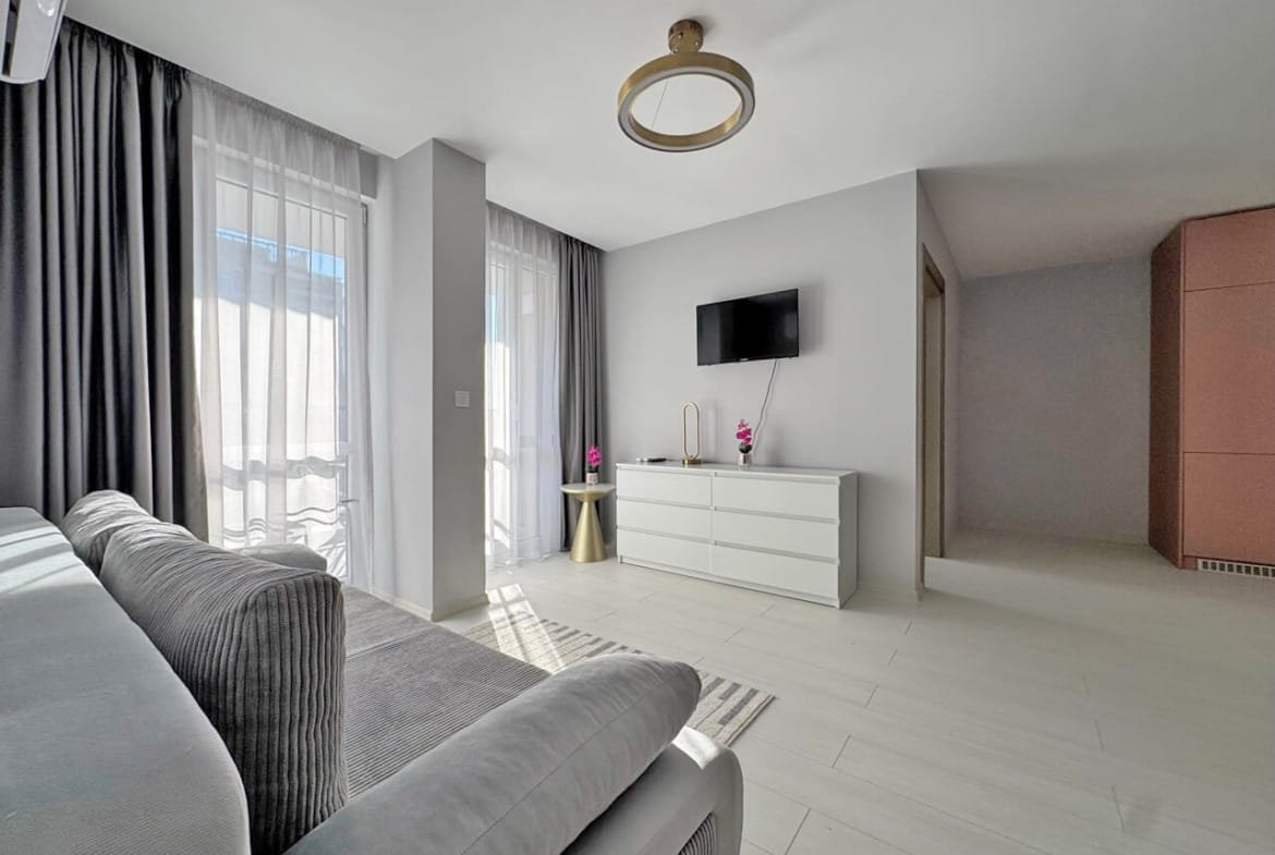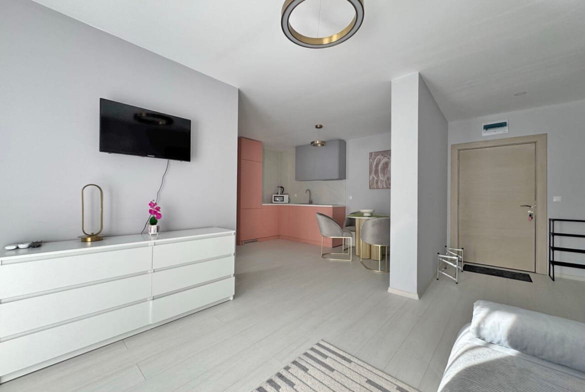 Функциональная планировка: Площадь 89 м² грамотно распределена между просторной гостиной с кухонной зоной и двумя полноценными изолированными спальнями, что идеально подходит для большой семьи.