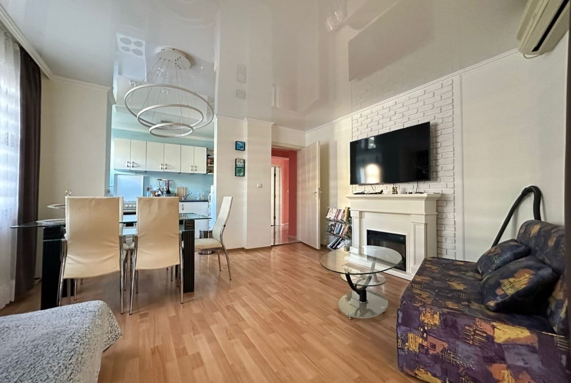 Предлагаем к продаже просторную трехкомнатную квартиру в комплексе Star Fish (Стар Фиш), расположенном в живописном городе Святой Влас. Апартамент имеет внушительную площадь 97 м² и находится на 2-м этаже, откуда открывается приятный комбинированный вид на бассейн и зеленую территорию комплекса.