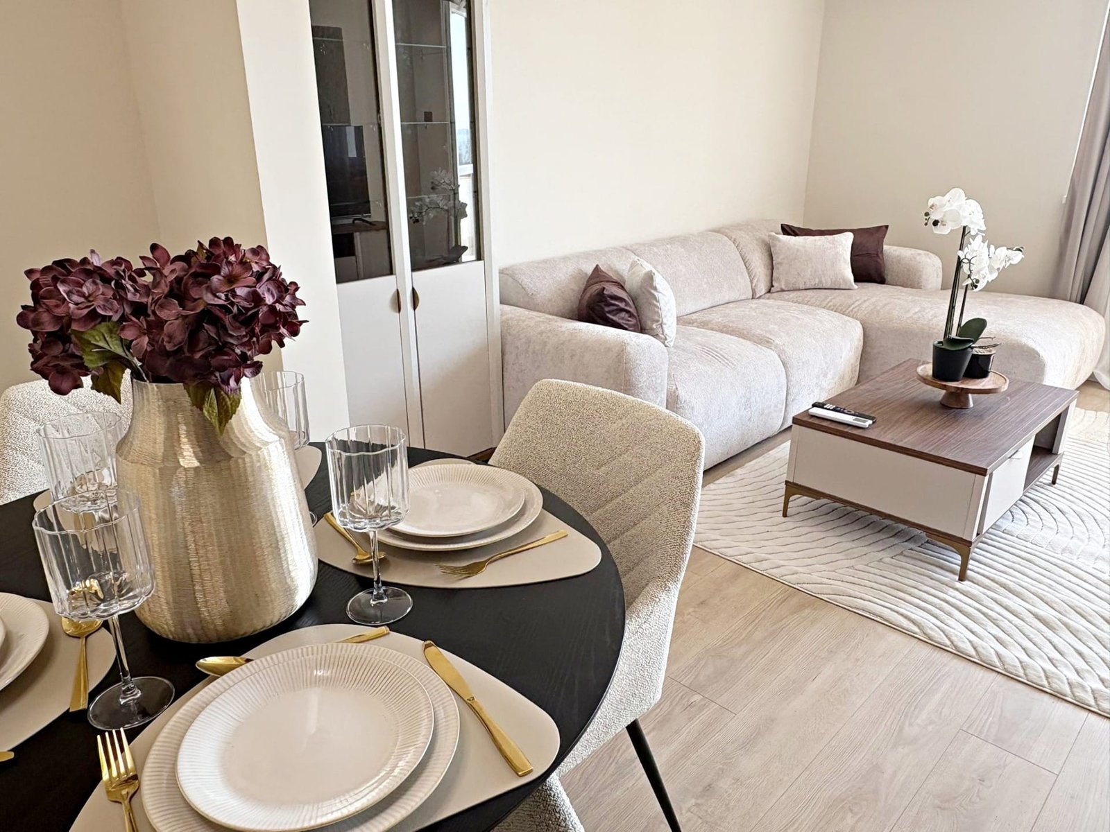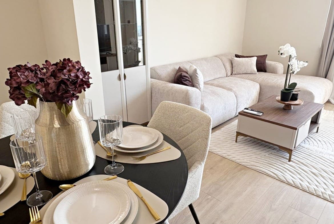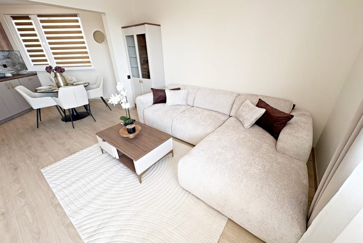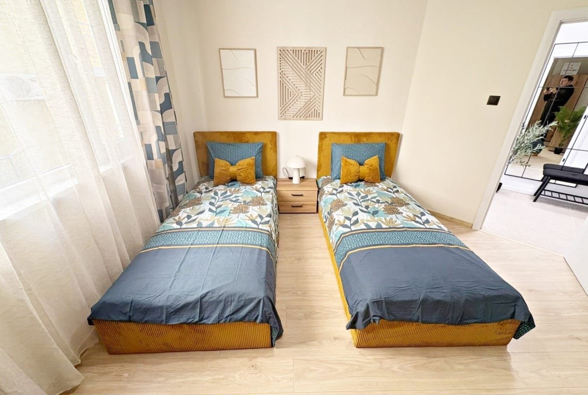 Рекордная площадь (136 м²): Квартира обладает очень просторной планировкой, включающей огромную гостиную с кухонной зоной, две полноценные изолированные спальни, функциональную прихожую и несколько ванных комнат. Метраж сопоставим с отдельным домом.